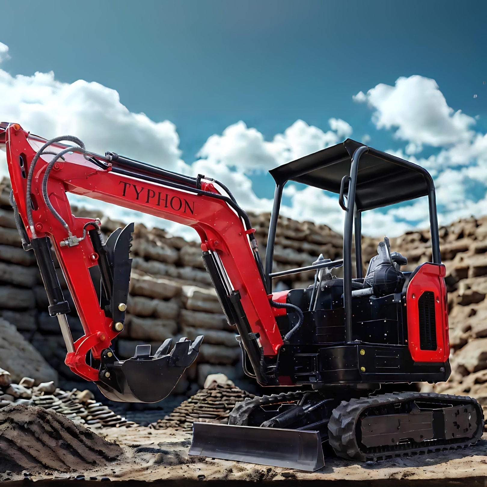 What’s Included: The TYPHON TERROR X2 STORM mini excavator machine comes with 1 x standard digging excavator bucket, as well as 1 x tool box, 1 x canopy, and 1 x digital manual with all the instructions.